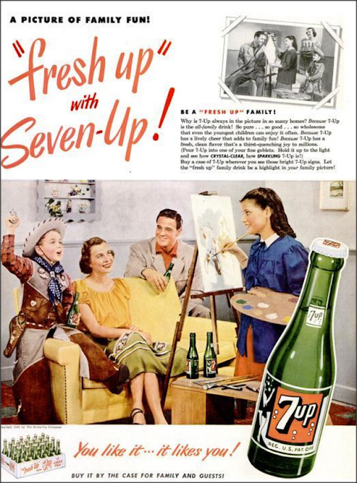 Acredita-se que a bebida originalmente tinha citrato de lítio em sua fórmula, um medicamento estabilizador do humor. Suas propagandas originalmente até mostravam bebês tomando a bebida.